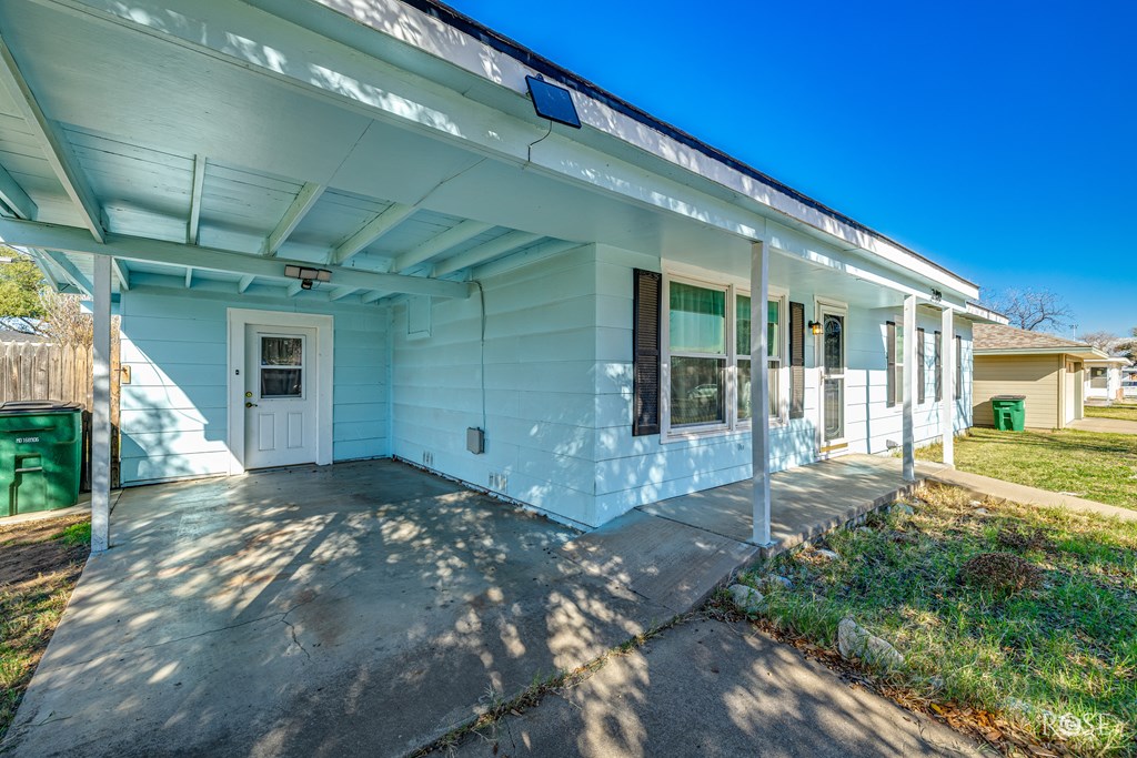 This charming home is conveniently located near Angelo State University, shopping, and popular restaurants.  This well-maintained 3-bedroom, 1.5-bath home offers comfort and functionality. A circular drive provides ample extra parking, perfect for guests or multiple vehicles. Inside, you'll find beautiful wood laminate floors throughout—no carpet—along with new windows that enhance natural light and energy efficiency. The home features gas appliances and a security system for added peace of mind. Step outside to enjoy a nice back patio, ideal for relaxing or entertaining, plus a large metal shed offering plenty of extra storage. This move-in-ready home combines location, practicality, and charm.