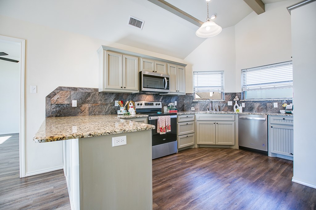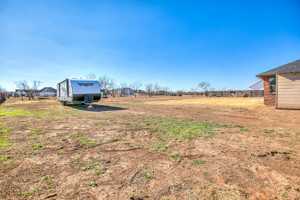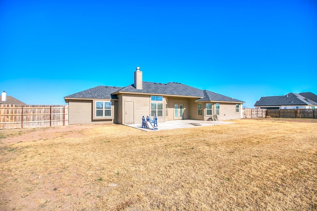 Better Than New in Buffalo Heights Addition! Come and put your personal stamp on this amazing property, Built in 2022, this beautiful family home offers the perfect blend of modern comfort and peaceful country living. Situated on a cleared acre with no through traffic, you'll enjoy privacy, space, and stunning West Texas sunsets from the extended back patio. Inside, the spacious living area features a cozy corner wood-burning fireplace, creating a warm and inviting focal point. The large kitchen is a chef's delight. Relax in your sequestered master suite, creating a private retreat separate from the secondary bedrooms. The home feels fresh and move-in ready, enhanced by tasteful landscaping and pride of ownership throughout. Additional highlights include an owned water softener, window blinds, fenced yard, extra parking, and a storage building for added convenience. Enjoy country living with no city taxes while still being just minutes from town. Hurry - B4 it is SOLD!