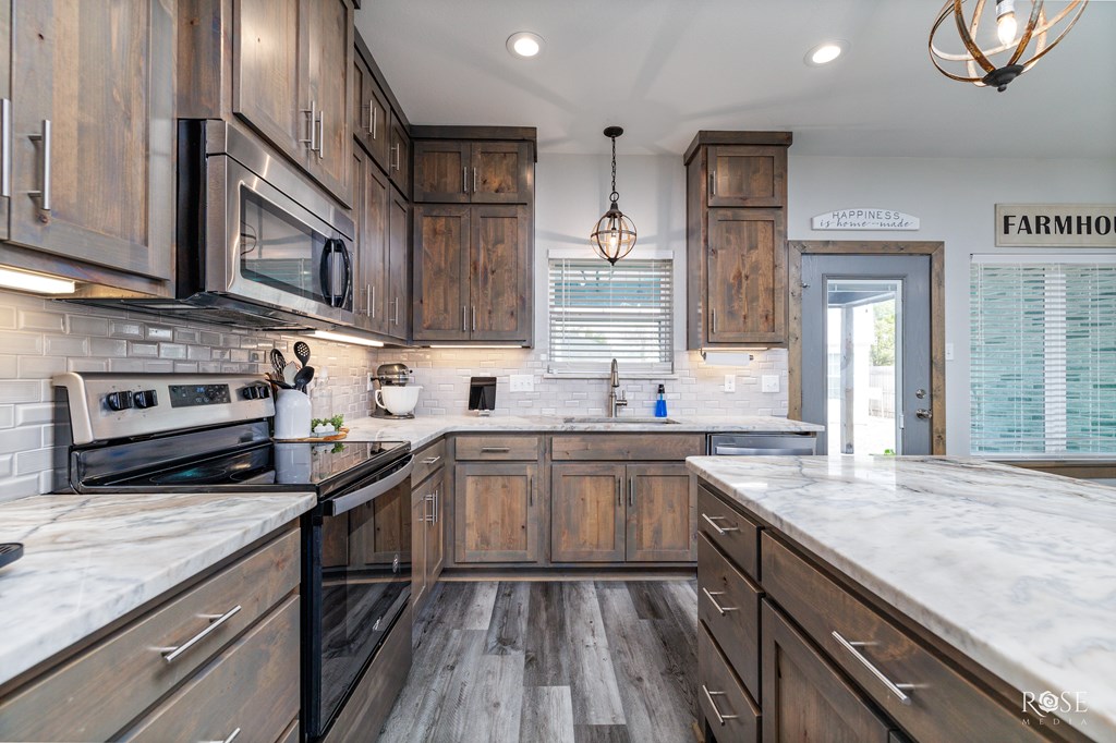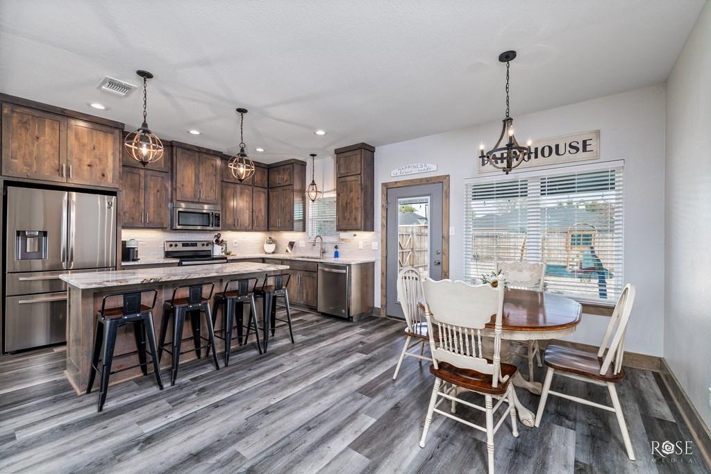 Built in 2021 and just moments from Lake Nasworthy, this 4-bedroom, 2-bath home checks all the boxes—and then adds a few you didn't even know you wanted. Inside, the open layout is anchored by a gorgeous stone, wood-burning fireplace and tongue-and-groove ceilings that instantly make the main living space feel warm and inviting without sacrificing style. Granite countertops, eye-catching fixtures, and thoughtful finishes carry throughout the home, while the large covered patio out back is ready for evenings spent unwinding or entertaining friends. Need extra space for hobbies, storage, or a workshop? The finished 12x16 outbuilding has you covered. Close to the lake, shopping, and dining—this one is absolutely stunning in all the right ways.