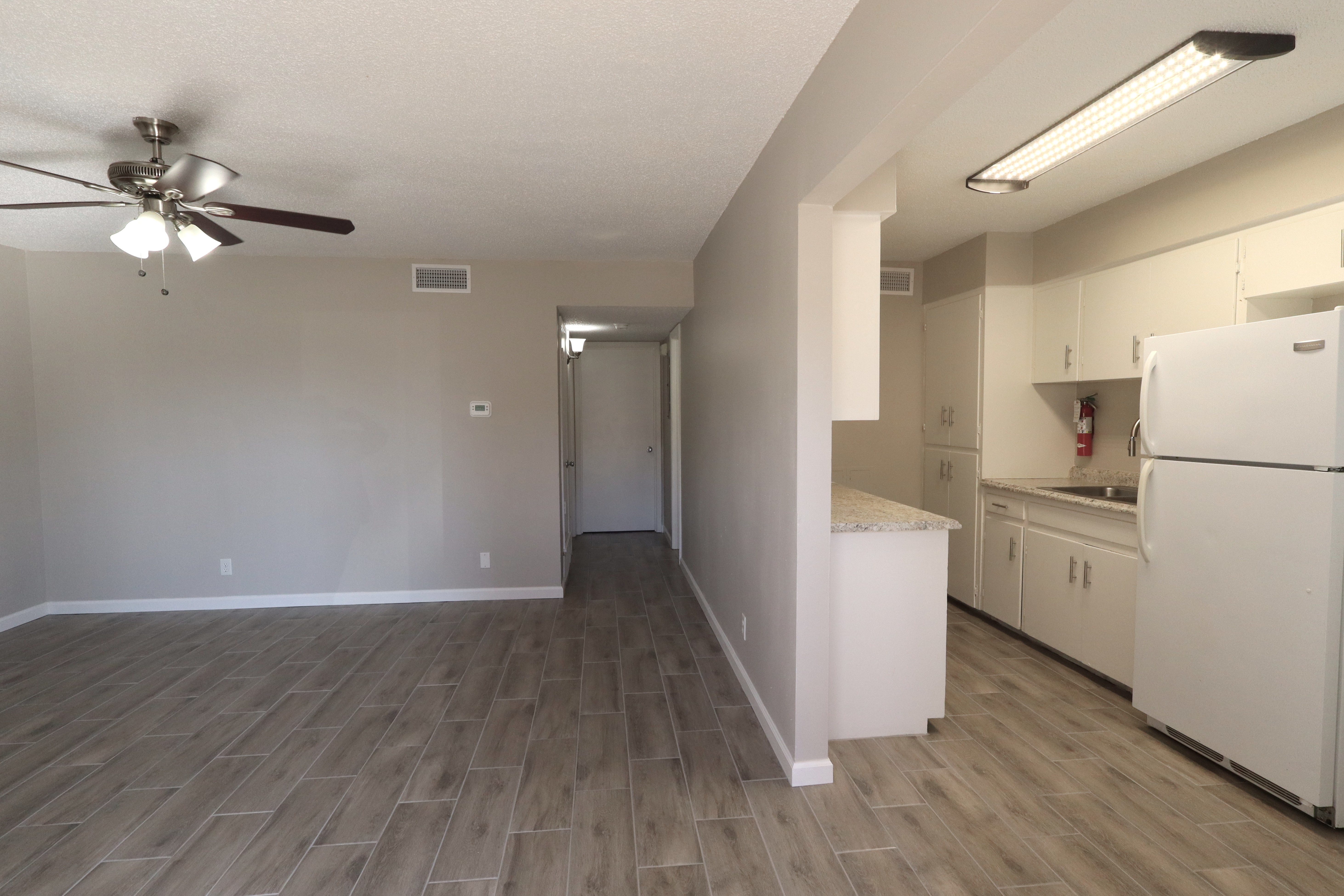 Flooring: Ceramic Tile Planks: Living Room, Kitchen, Bedrooms, Bath